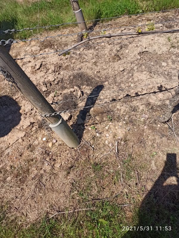 Ein paar Tage später hatten die ersten Reben eine Höhe erreicht, in der wir die Drähte zum letzten Mal gehoben haben.