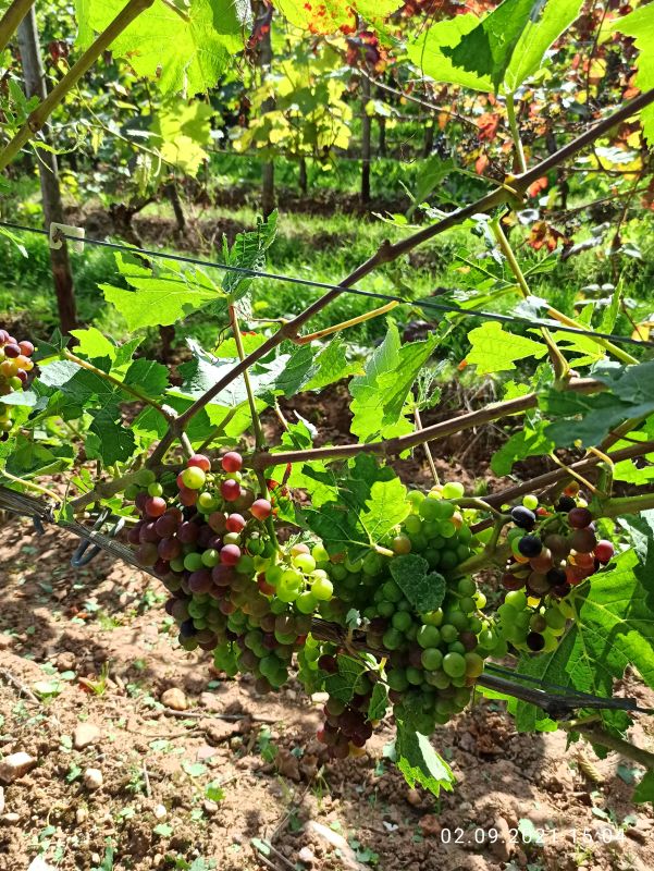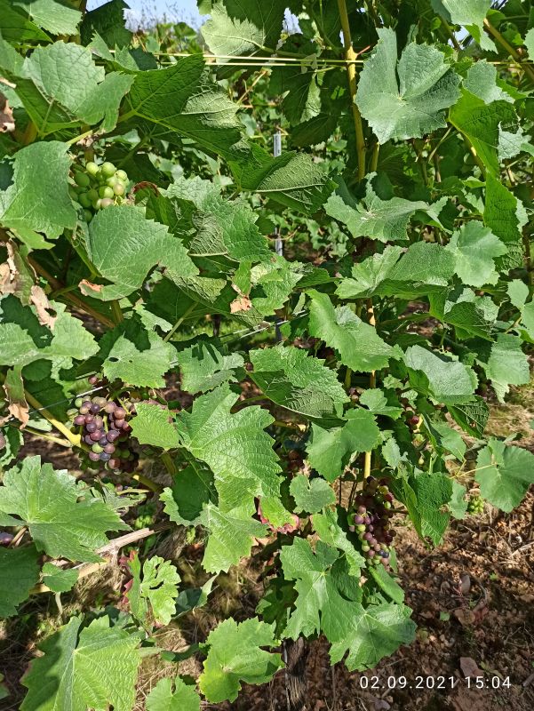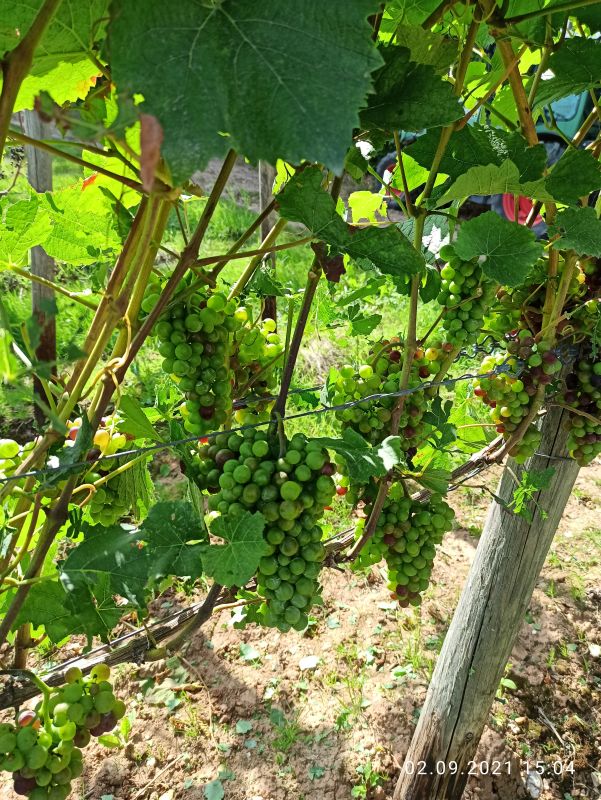 2020 konnten wir in unserem Jungfeld, dass wir im Juni 2019 mit Sauvignon - Blanc Reben bepflanzt haben, die erste kleine Ernte einfahren. Klein, wegen der Menge, die der heiße, feuchtigkeitsarme Sommer zu verantworten hat. Da die Wurzeln der jungen Reben noch nicht tief genug in die Erde gehen, wurde ein großer Teil der Früchte schon im Sommer entfernt. Dadurch nimmt man der Pflanze den Trockenstress und sie kann überleben.