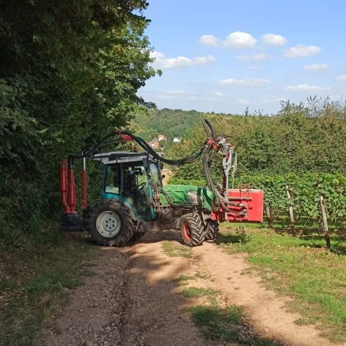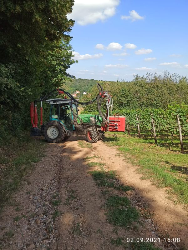 Ab jetzt wird das überflüssige Laub maschinell abgeschnitten, bis dann ungefähr Anfang September das Wachstumsstadium beendet ist.